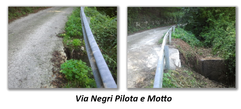 pilota e mottoCome la strada si presentava in via Negri Pilota e Motto prima dell'intervento e come si presenta ora dopo la messa in sicurezza.