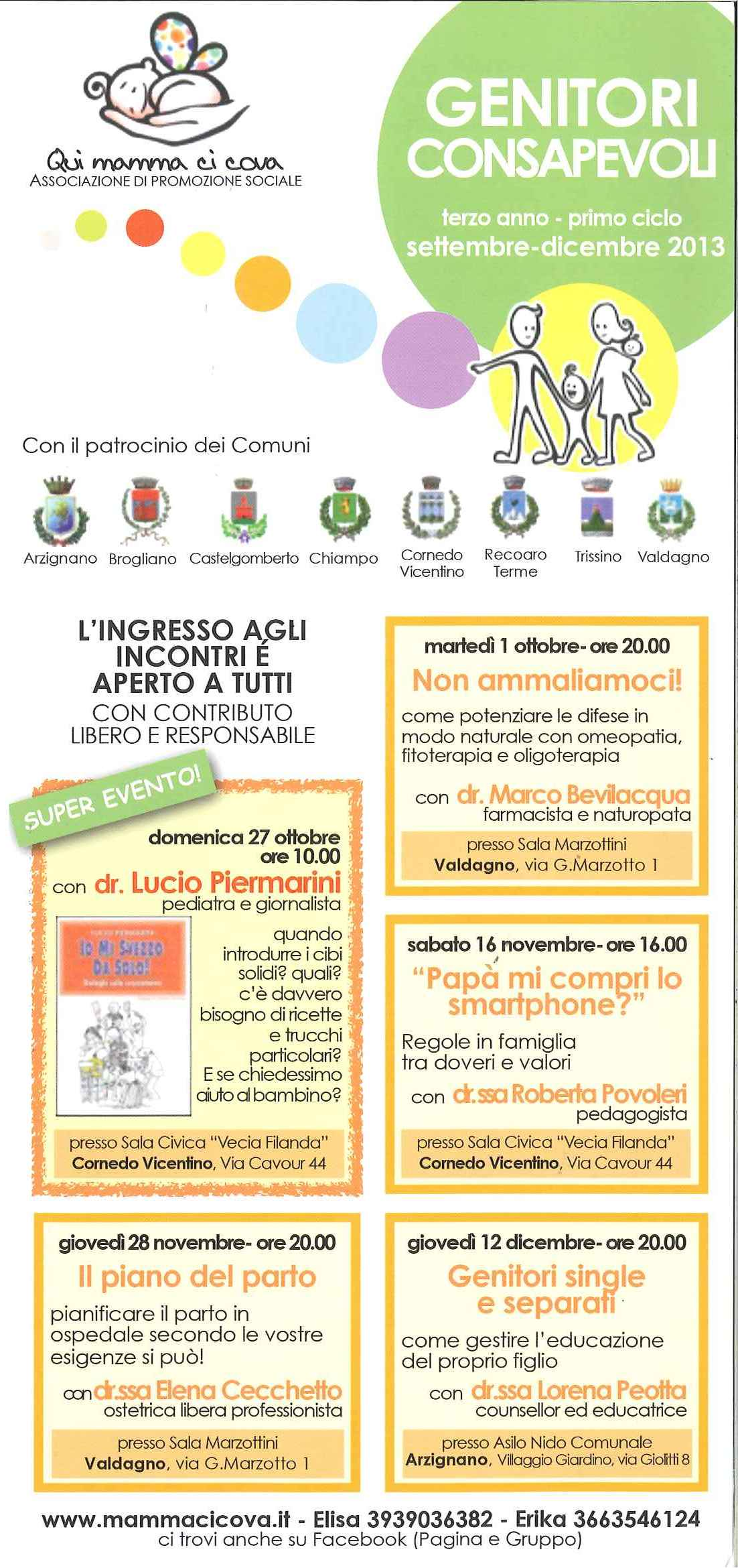 Per il terzo anno il Comune di Chiampo patrocina il progetto Genitori consapevoli dell'associazione Qui mamma ci cova. L'ingresso agli incontri è aperto a tutti con contributo libero e responsabile.