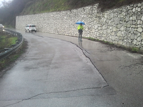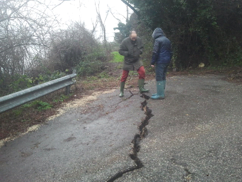 Il primo movimento in prossimità di località Nardi che ha causato il franamento di circa 1000 mc di terreno sulla strada comunale interrompendone la viabilità. E’ stata emessa apposita ordinanza per la chiusura della strada fino all’eliminazione del pericolo.
