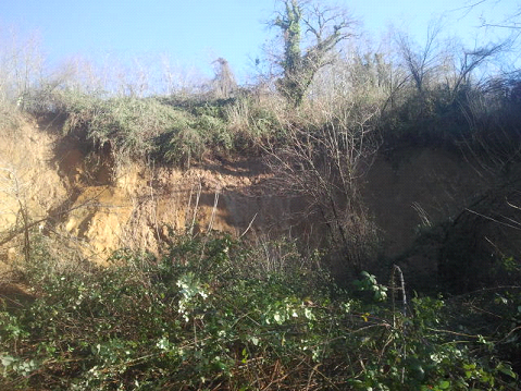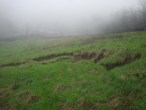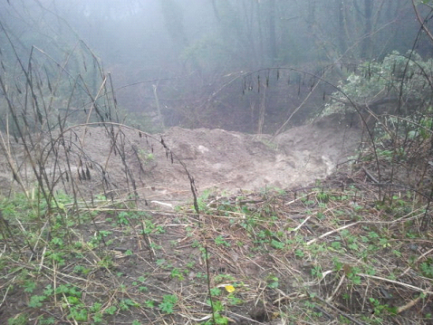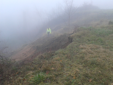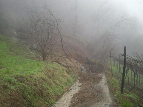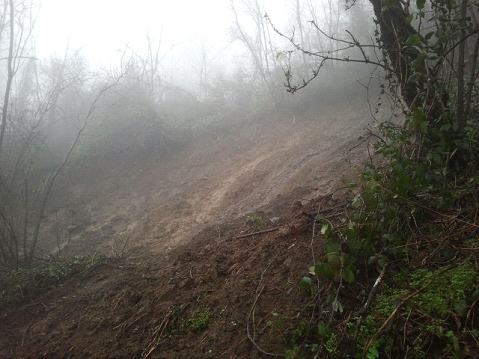Foto della nicchia di distacco della frana in prossimità della strada comunale (lunedì 03.02.2014)