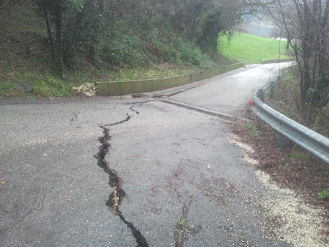 Frana via Busetta: riattivazione di un movimento franoso che ha colpito la strada comunale di via Busetta poco prima di località Lovati. Il movimento ha determinato l’abbassamento stradale di circa 20 cm per la formazione di numerose crepe di trazione.