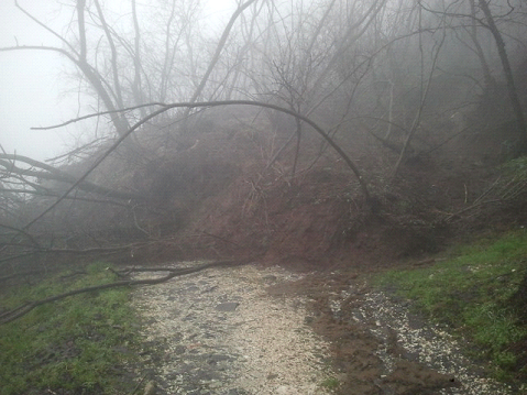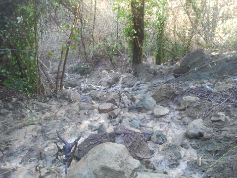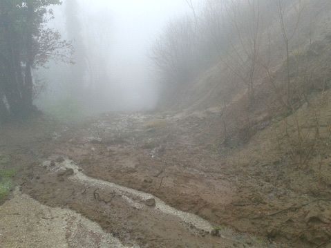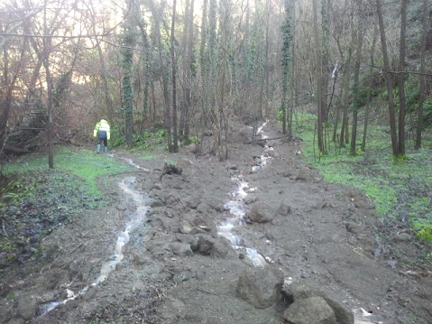 Frana valle Gona: innesco di un movimento franoso in prossimità di località Gona che provocato lo scivolamento a valle di circa 3000 mc di materiale lungo l’alveo della valle Gona.