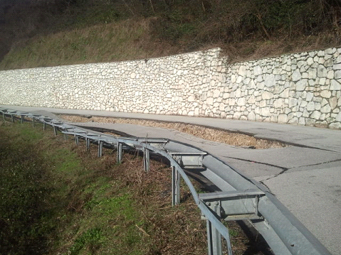 Come interventi d’emergenza si è provveduto ad intercettare le acque provenienti dal dreno del muro a monte della strada e portarle tramite tubazioni provvisoria sulla valle.