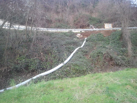Foto della tubazione provvisoria posta sulla frana