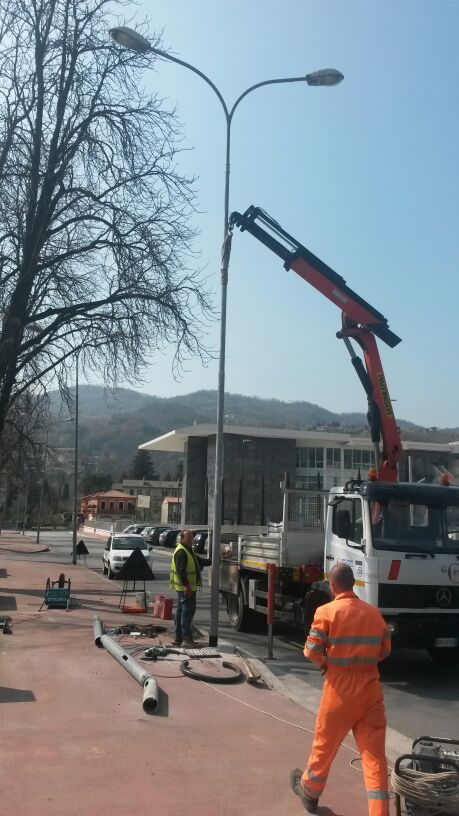Sostituito il lampione fronte palestra Mondelange divelto in circostanza di un sinistro.