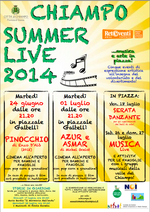 Le previsioni meteo di oggi sono peggiorate quindi questa sera, martedì 01 luglio, alle ore 21.20 la proiezione di “AZUR E ASMAR” di Michel Ocelot sarà in Auditorium comunale!