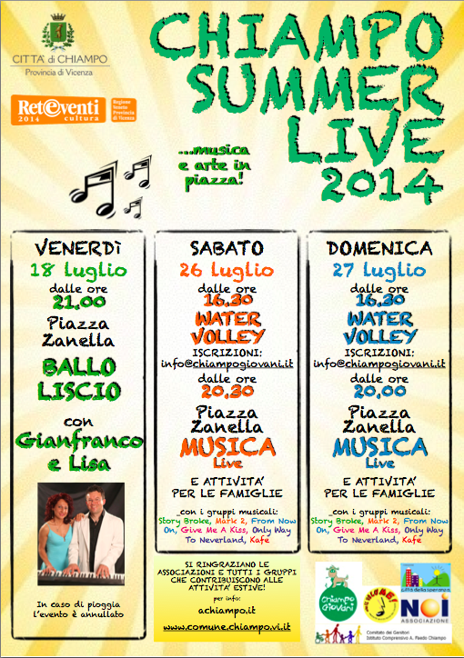 Chiampo Summer live 2014 in piazza Zanella SABATO 26 LUGLIO:
